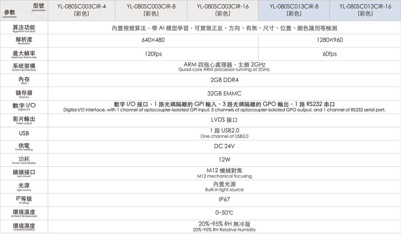 Built-in light source, supporting stroboscopic function. - IP67 防護,適應惡劣的工業環境