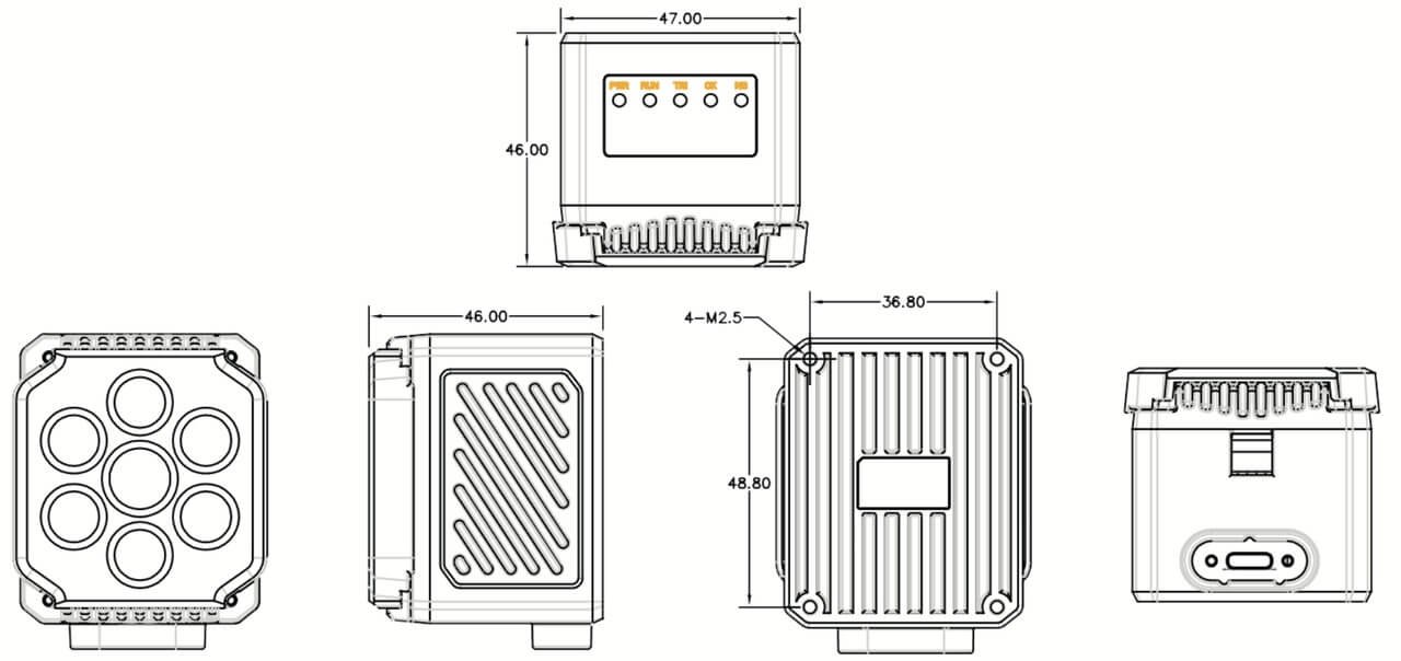 There are abundant status indicator lights, which are used for installation, debugging, and status display. - 內置 M12 鏡頭,支援機械調焦,便於現場調試