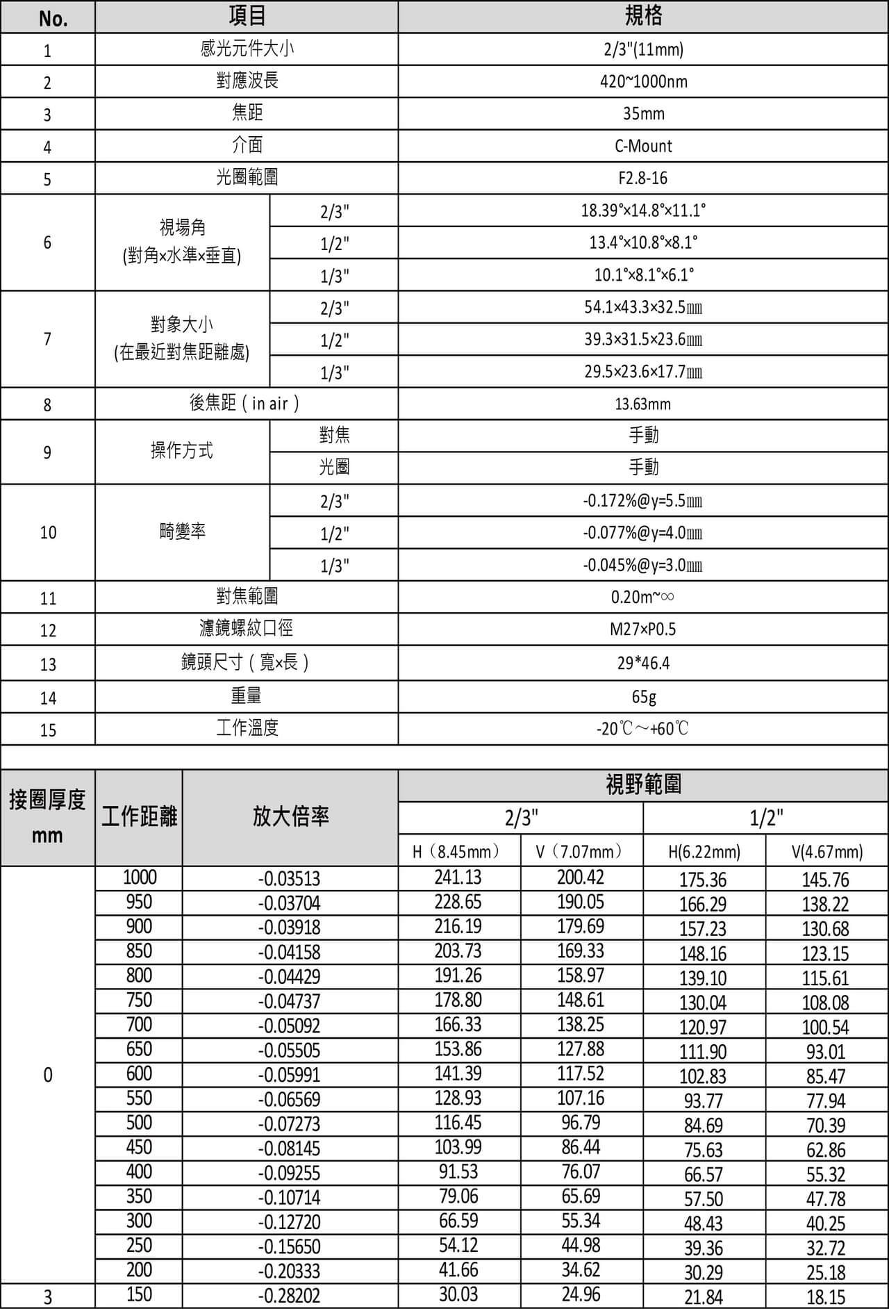 YL2835 10MP 2/3″ 35mm FA鏡頭