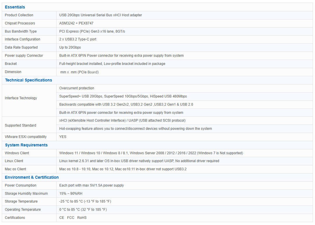 - 每埠傳輸速率 (Data rate per port) USB 3.2 20Gbps