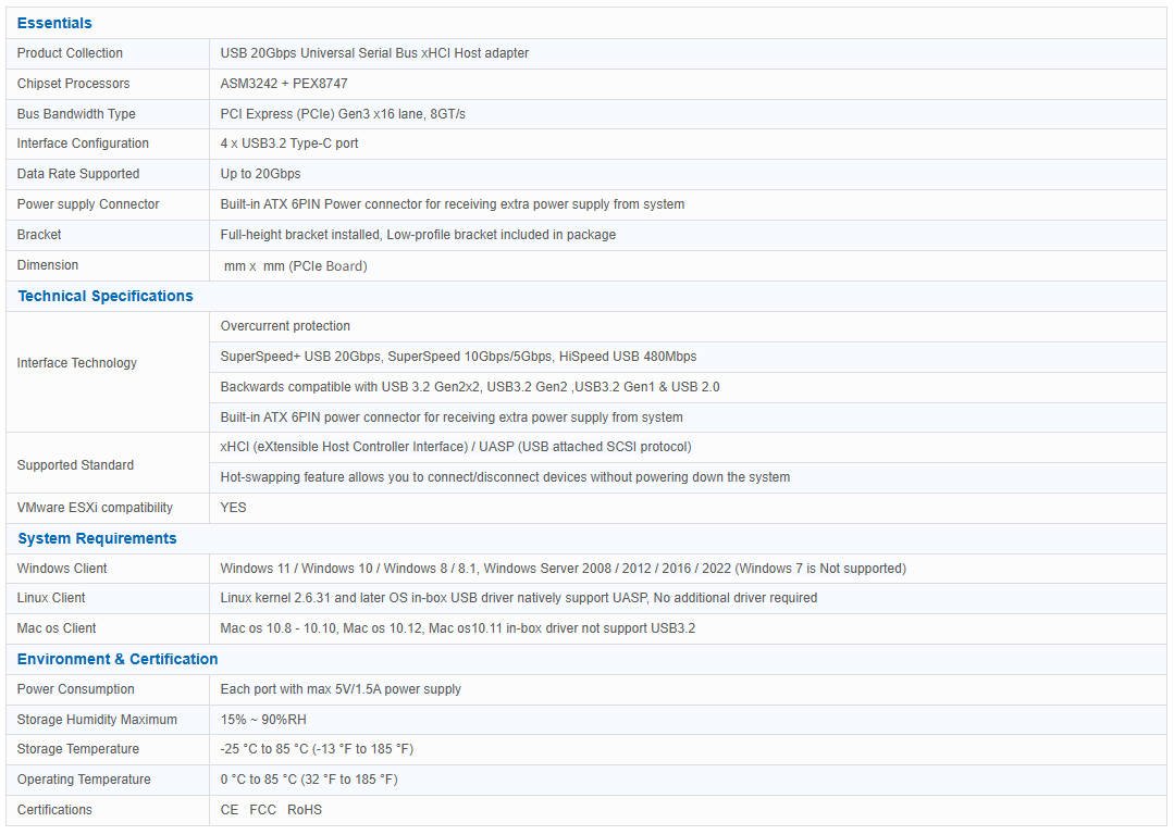 - 將PCI Express橋接到USB3.2