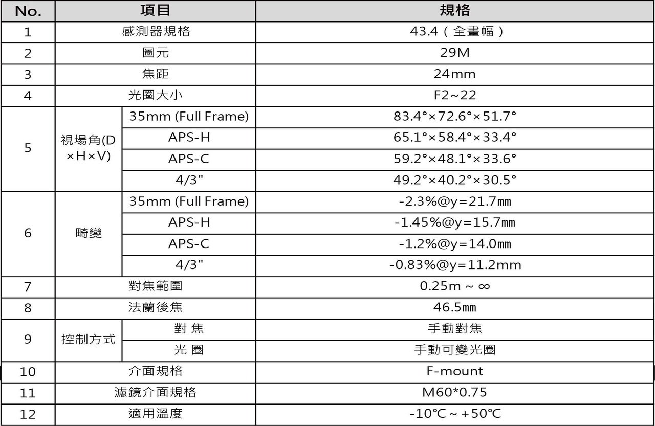 YL2024 29MP 全畫幅 φ45mm F接口鏡頭