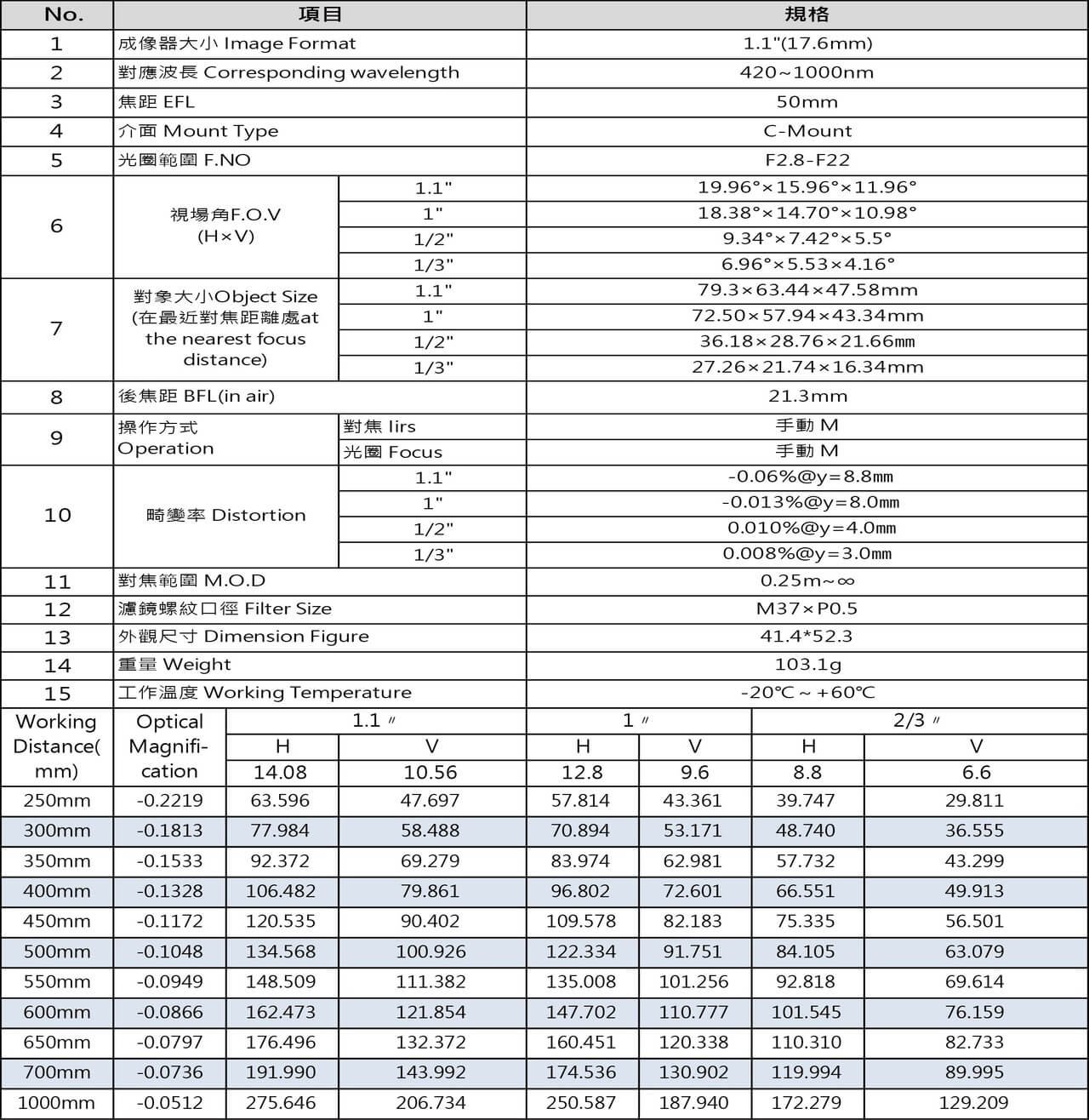 YL2850 20MP 1.1″ 50mm FA鏡頭
